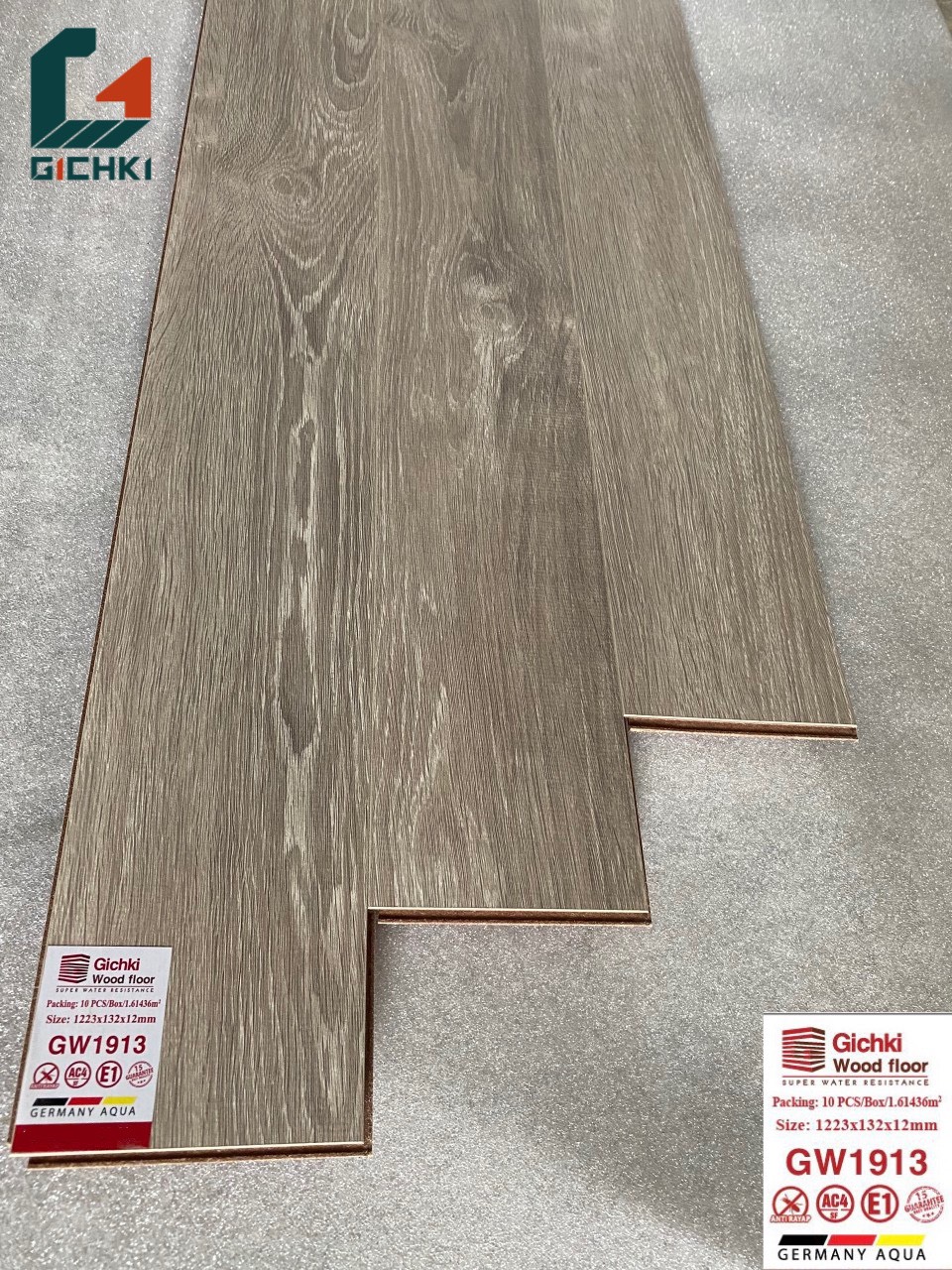 Sàn gỗ công nghiệp Gichki GW 1913 là dòng sản phẩm phù hợp với khí hậu Việt Nam, do chính Việt Nam sản xuất. Sàn gỗ được sản xuất trên dây truyền công nghệ của Đức, đạt chất lượng cao, thẩm mỹ, bền trong quá trình sử dụng